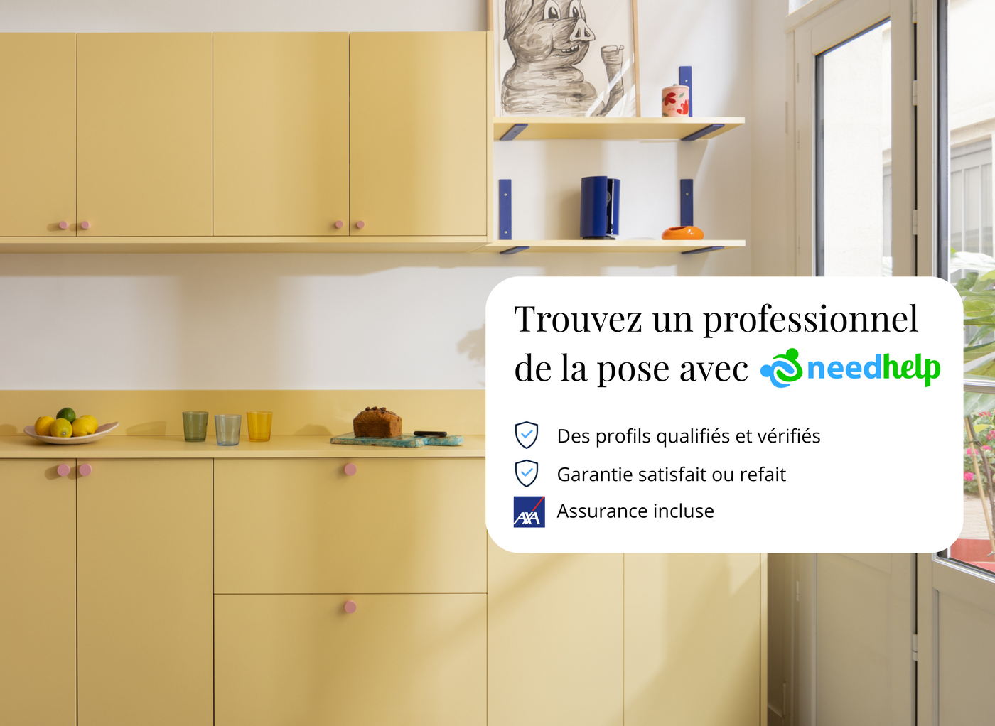 Pour vous accompagner jusqu’à la pose, Studio Couleur s'est associé à NeedHelp, une plateforme de mise en relation entre particuliers et professionnels de l'agencement et des travaux de la maison.